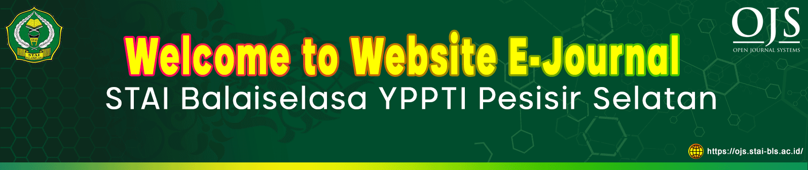The STAI Balaiselasa YPPTI Pesisir Selatan West Sumatra Indonesia E-Journal is the home for all academic and peer-reviewed journals within the STAI Balaiselasa YPPTI Pesisir Selatan environment. Our main task is to make academic journals a research center and produce integrative-interconnective research and studies published by faculties and study programs within STAI Balaiselasa YPPTI Pesisir Selatan and disseminated widely through the academic community. Officially opening in November 2023. Currently, the number of academic and peer-reviewed journals available at STAI Balaiselasa YPPTI Pesisir Selatan is 4 journals. This Journal House is run at the Institute for Research and Community Service, STAI Balaiselasa YPPTI Pesisir Selatan West Sumatra Indonesia in collaboration with the International Islamic Studies Development and Research Center (IISDRC) https://iisdrc.org/.