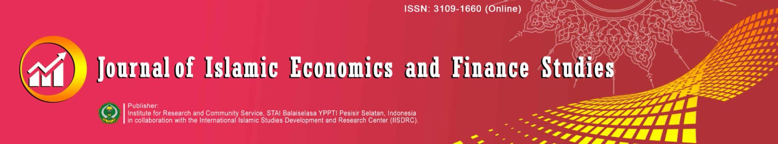 Journal of Islamic Economics and Finance Studies is published by the Institute for Research and Community Service, STAI Balaiselasa YPPTI Pesisir Selatan, Indonesia in collaboration with the International Islamic Studies Development and Research Center (IISDRC) https://iisdrc.org/. Journal of Islamic Economics and Finance Studies It is published twice in June and December every year.